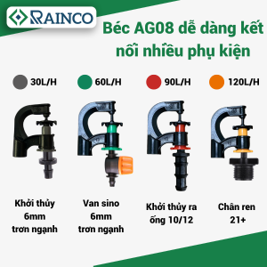 Trọn bộ sản phẩm bao gồm: Đầu béc AG08 – 60L + Khởi thủy 6mm trơn ngạnh