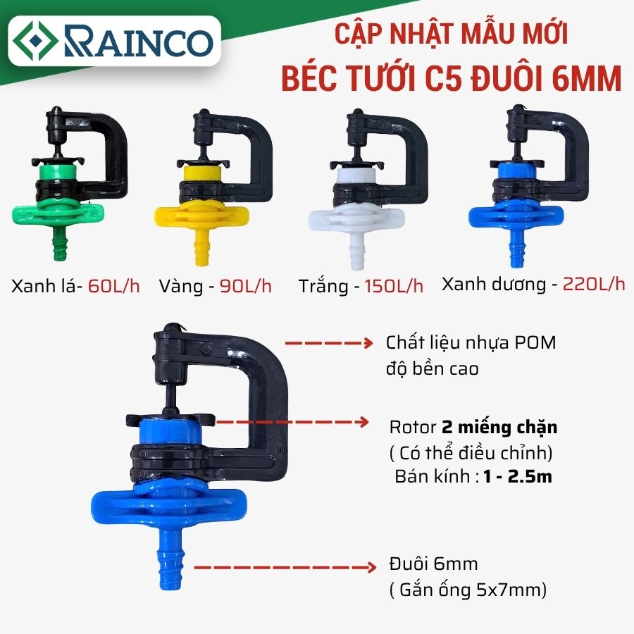 BÉC TƯỚI CÂY PHUN MƯA C5 ĐUÔI 6MM 60L/H