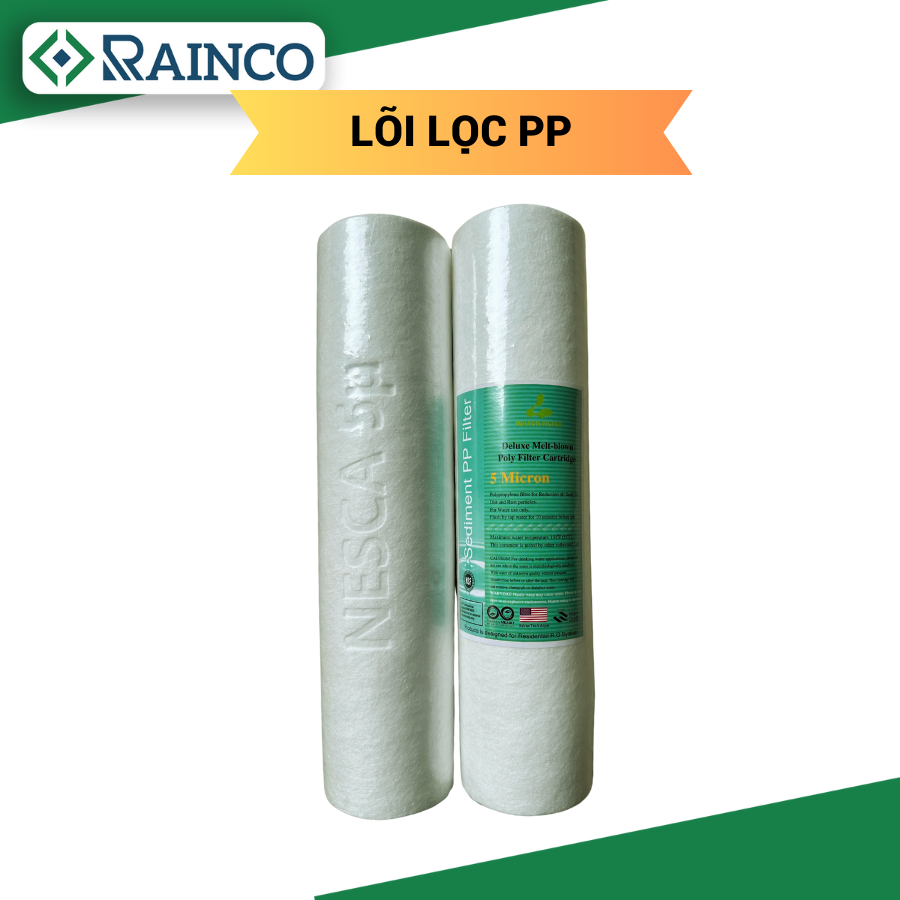 - Lõi lọc PP giúp loại bỏ các cặn bẩn, tạp chất, rỉ, bùn đất và các tạp chất khác lẫn trong nước có kích thước >= 5 micro, … bảo vệ các thiết bị như máy bơm phun sương, giúp tăng tuối thọ máy, hạn chế tắt nghẹt đầu béc