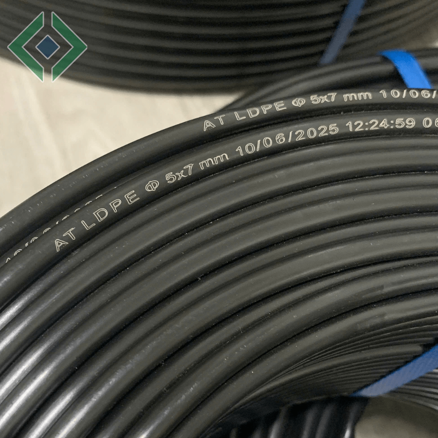 - Trên thân ống có khắc lazer: “AT LDPE Φ 5×7 mm + ngày/tháng/năm sản xuất + giờ sản xuất + số mét”